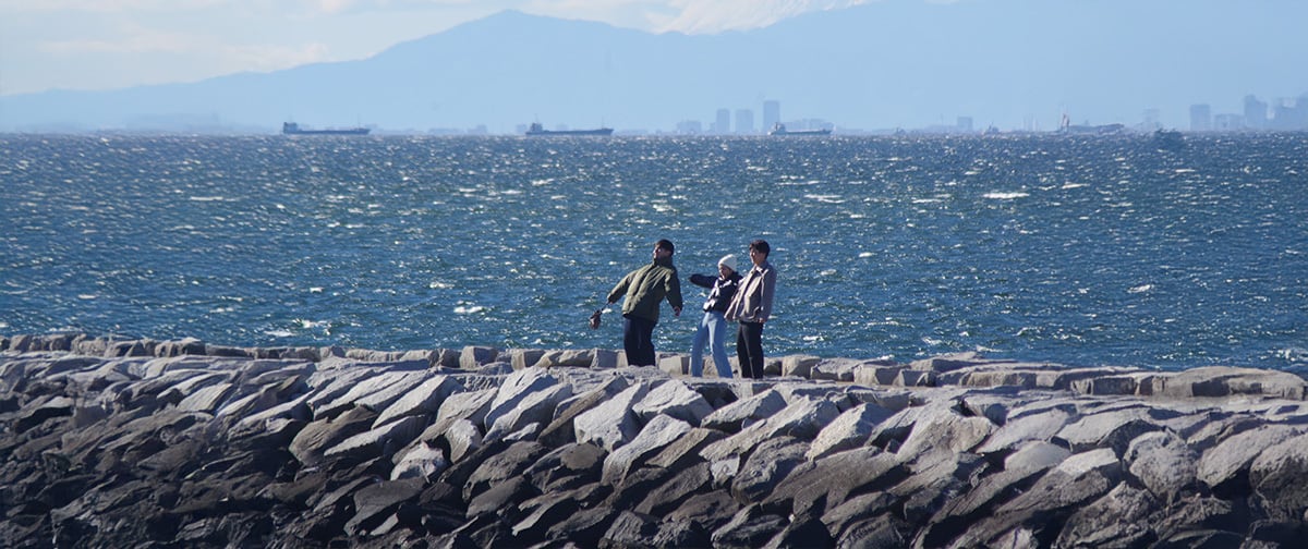 PhotoTEE-灰色の海岸 2020年7月30日 午前5時8分に撮影された写真です。 海岸で海釣りしてる人たち 海と空の境界が分かりません