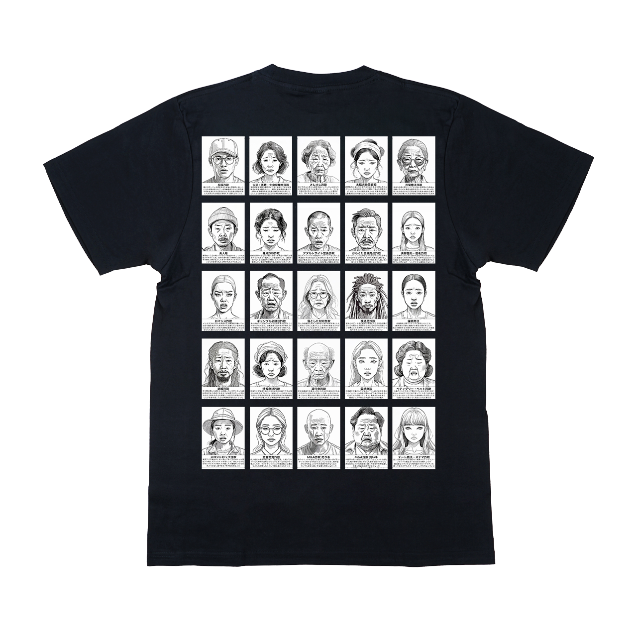 ※Tシャツに描かれている人物は架空のものです。実在の人物とは一切関係がありません。もし似通っている方がいらっしゃいましたら、ご愁傷様でした。
